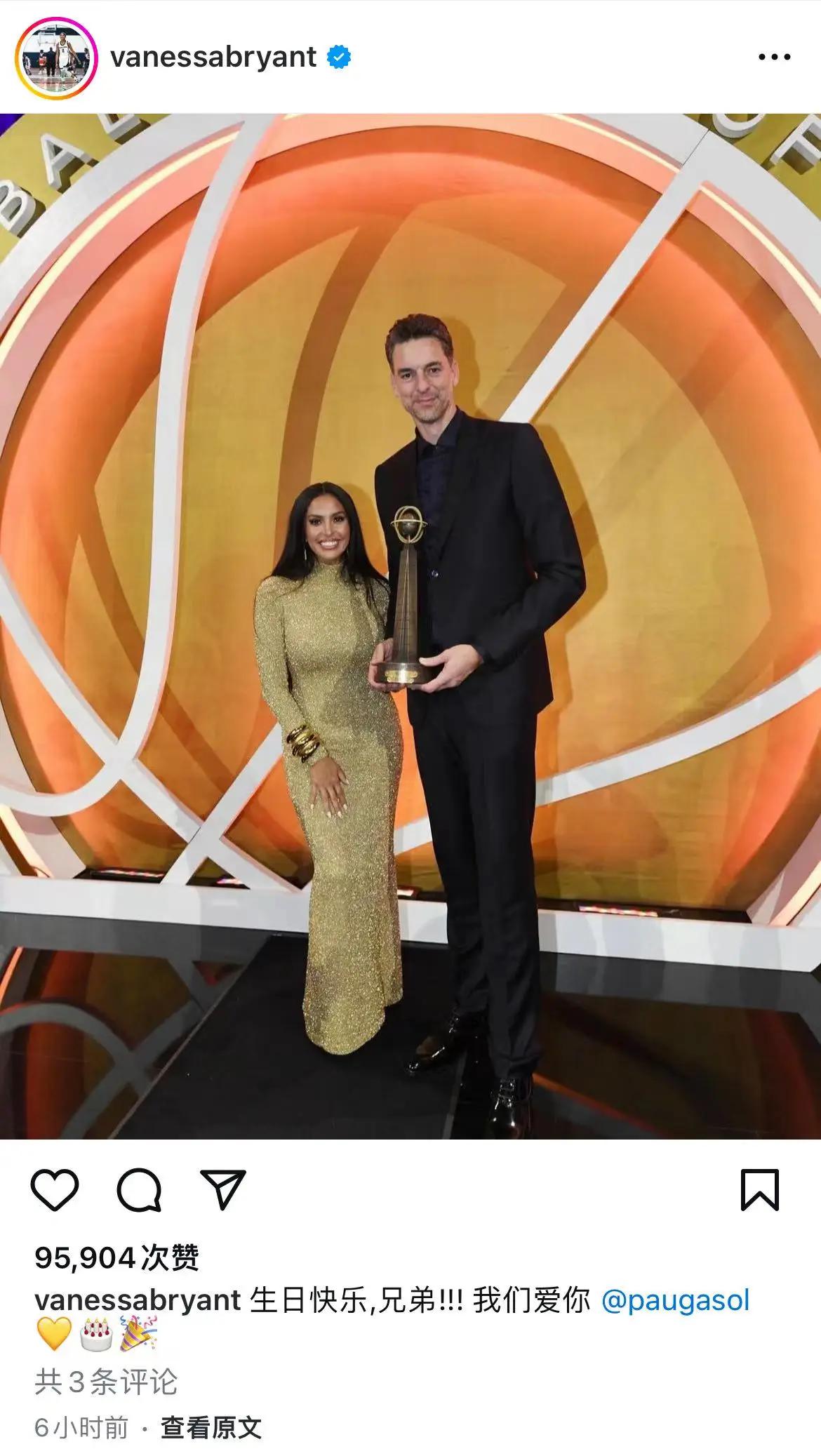 北京时间7月7日,湖人名宿保罗-加索尔迎来了44岁生日,瓦妮莎在社交媒体第一时间送上祝福语:“生日快乐,兄弟!!!我们爱你!”