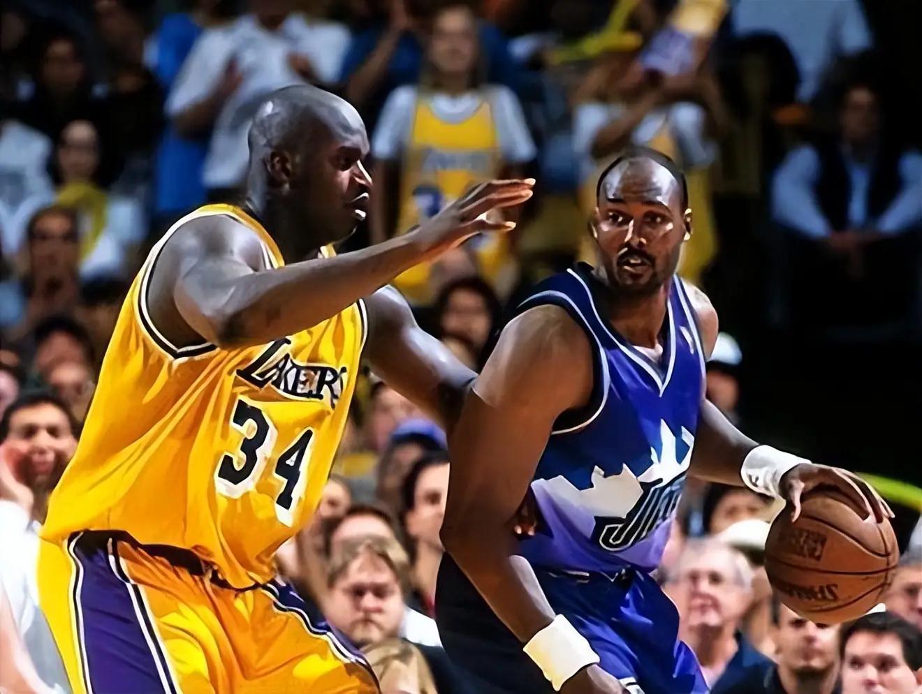 季后赛面对开拓者和超音速,奥尼尔都展现了无解的统治力,西部决赛再次遇到爵士,湖人还是处于下风,整轮系列赛,斯托克顿频繁利用挡拆将奥尼尔调出内线,没有奥尼尔的湖人内线,就相当于一层纸了。