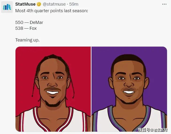 要知道,根据数据媒体Statmuse的统计,上赛季末节得分中,德罗赞以550分高居全联盟第一位,而福克斯则以538分位居第二。这笔交易直接将两大末节之王凑到一个球队,关键时刻显然就有了更多的保障,不会再出现掉链子的情况。