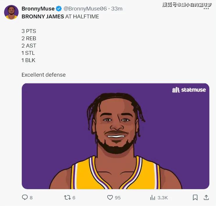 杜德利说:夏联场均25/26分的球员可能不会留在NBA,有些场均5/6分的角色球员则可以,别看数据,数据只是给那些充耳不闻的人看的。勒布朗-詹姆斯默默转发这条消息,为了太子布朗尼,老詹太辛苦。