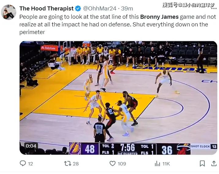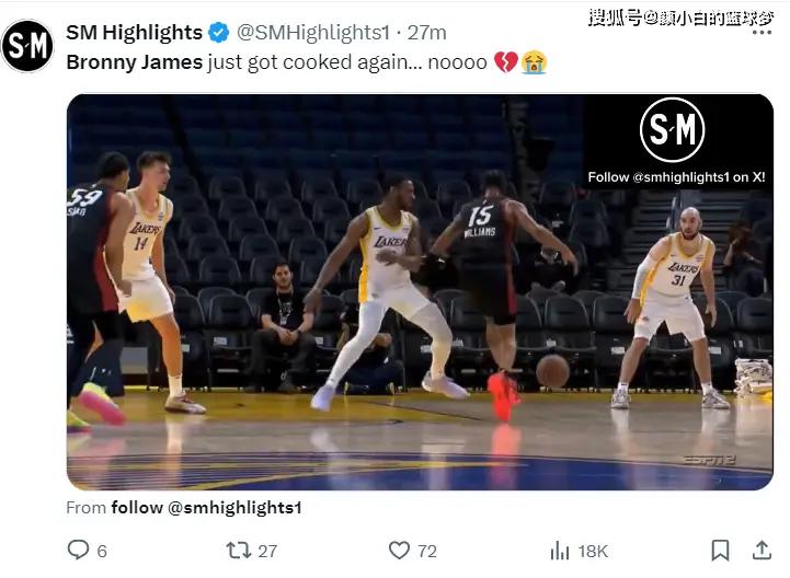 北京时间7月11日,NBA夏季联赛,湖人76-80被热火逆转吞下三连败。这场比赛勒布朗-詹姆斯的儿子布朗尼-詹姆斯再一次打出了糟糕的表现,整整29分钟只有3次出手,下半场一次出手都没有,贡献了两次五大囧与3分。