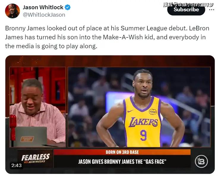 批判的声音更多,名嘴Jason Whitlock在节目中说道:布朗尼在夏联中显得格格不入,勒布朗将他的儿子变成了许愿小子,他竟然拿到了四年790万,各大媒体都是罪魁祸首。