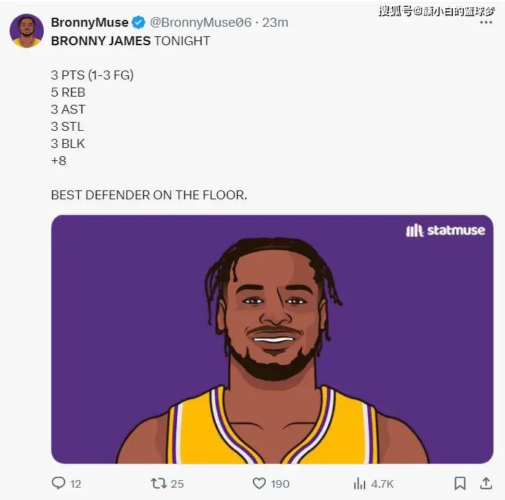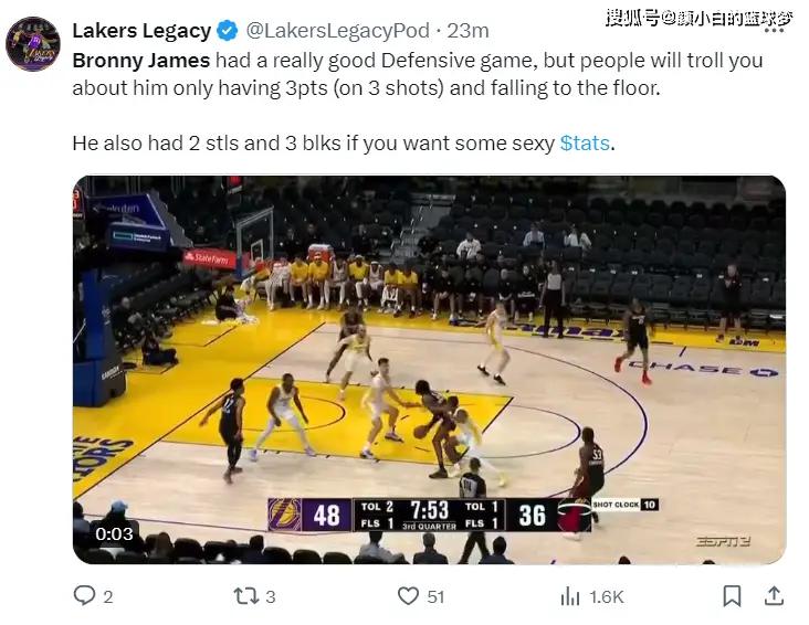 湖人媒体写道:布朗尼打出了一场很好的防守表现,但人们只会嘲笑他3分+3次出手与摔倒在地。