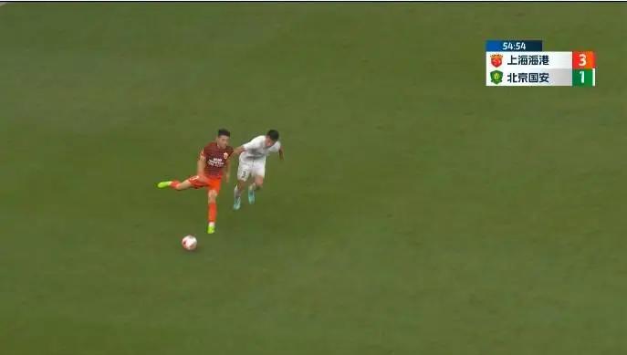 直播吧7月12日讯中超第19轮,上海海港vs北京国安。比赛第55分钟,武磊连停带趟高速启动,何宇鹏无奈只能拉拽球衣,领到一张黄牌。