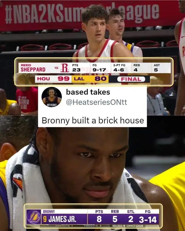 北京时间7月13日,NBA夏季联赛继续进行,湖人80-99遭火箭吊打,以4连败的战绩结束征程。“太子爷”布朗尼虎头蛇尾,老皇帝为他戴上安全帽。