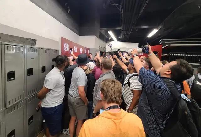 赛后采访,出现了扎心似曾相识的一幕,布朗尼身旁人山人海,此役发挥出色的探花谢泼德门可罗雀。