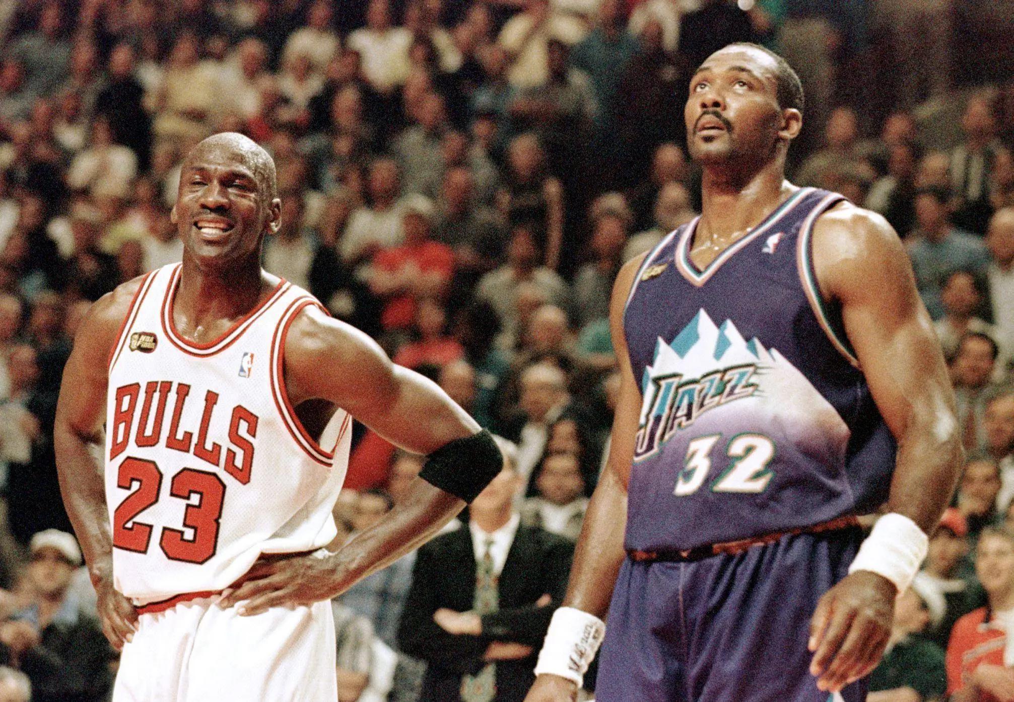 公牛队史第一人就是乔丹,没有什么好多说的,历史第一人的存在。爵士队史诗卡尔马龙,其实和斯托克顿同样都是将自己的全部奉献在这里了,而且斯托克顿终老爵士了。火箭队史是奥拉朱旺,历史上最全能的中锋,队史两个总冠军都是大梦拿下的。