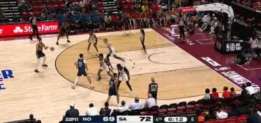 北京时间7月17日,NBA夏季联赛马刺90-85击败鹈鹕。此役,鹈鹕球员马特科维奇的表现堪称震撼,令人侧目。全场比赛,马特科维奇13中11得到25分5篮板3盖帽。在比赛中,马特科维奇在进攻端无所不能,空接暴扣、个人突破、篮下强打、转身脚步、抛投等等,而且命中率极高。同时在防守端,马特科维奇也展示了自己身高臂长的优势。