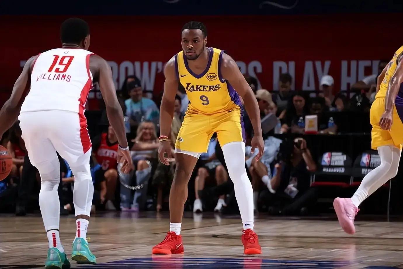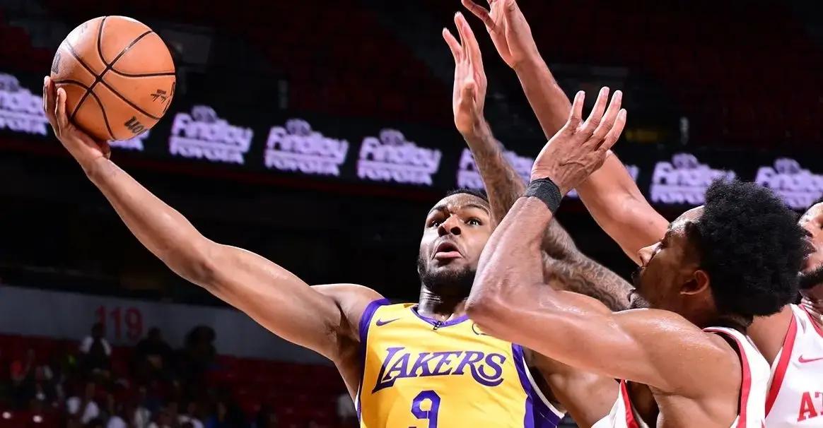 进入第二节,比赛进入了白热化阶段。在距离本节结束还有2分47秒时,湖人队的55号新秀布朗尼-詹姆斯挺身而出,他射落了一记急停三分,不仅帮助球队稳住了阵脚,更重要的是,这一球也让他摆脱了此前在夏季联赛中连续16次三分不中的阴影。这一记三分球仿佛成为了布朗尼职业生涯的转折点,他的状态开始逐渐回暖。