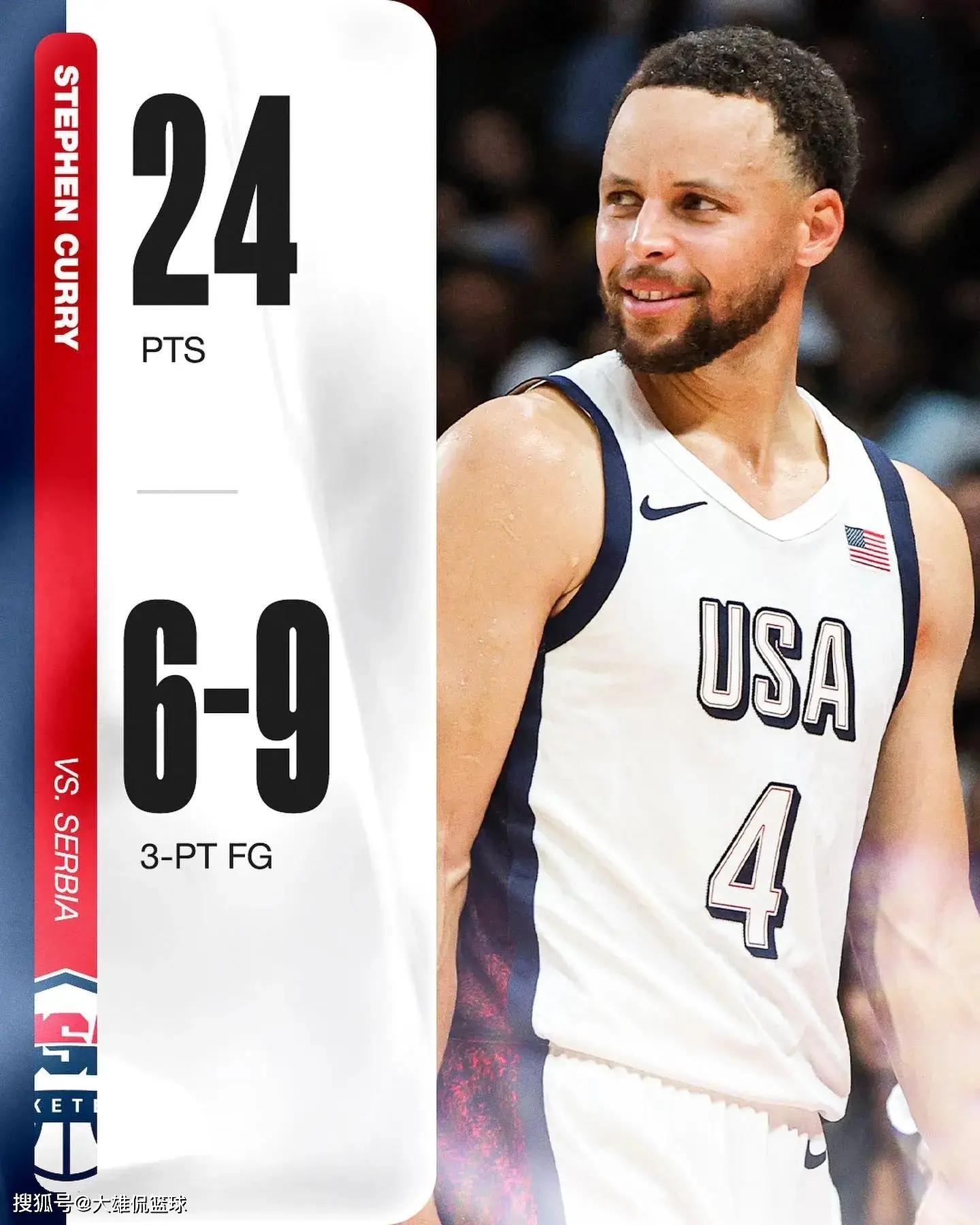 在阿布扎比举行的奥运会热身赛中,塞尔维亚和美国队只僵持了一节半,在第二节进行到一半时双方40平,美国男篮做出新的攻防部署,直接打出一波19-5的冲击波,瞬间拉开分差。
