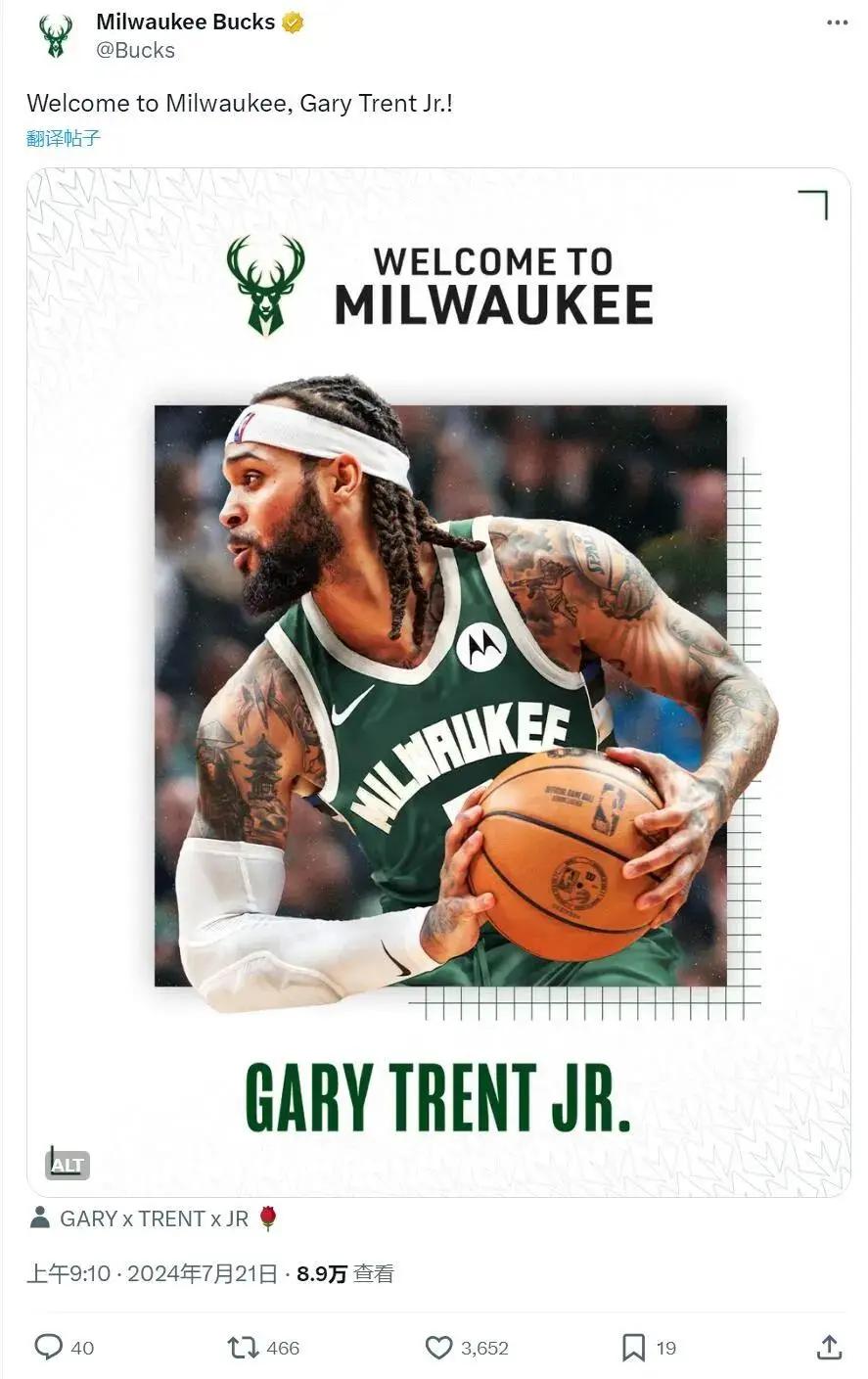 签约雄鹿之后,特伦特激动地说道:“加入一支拥有名人堂球员的冠军球队,是我一生难得的机会。我将用自己的努力去帮助球队。这是件非常美妙的事情,我已经迫不及待开始新赛季了。”名人堂球员+冠军球队?湖人:我也是啊!