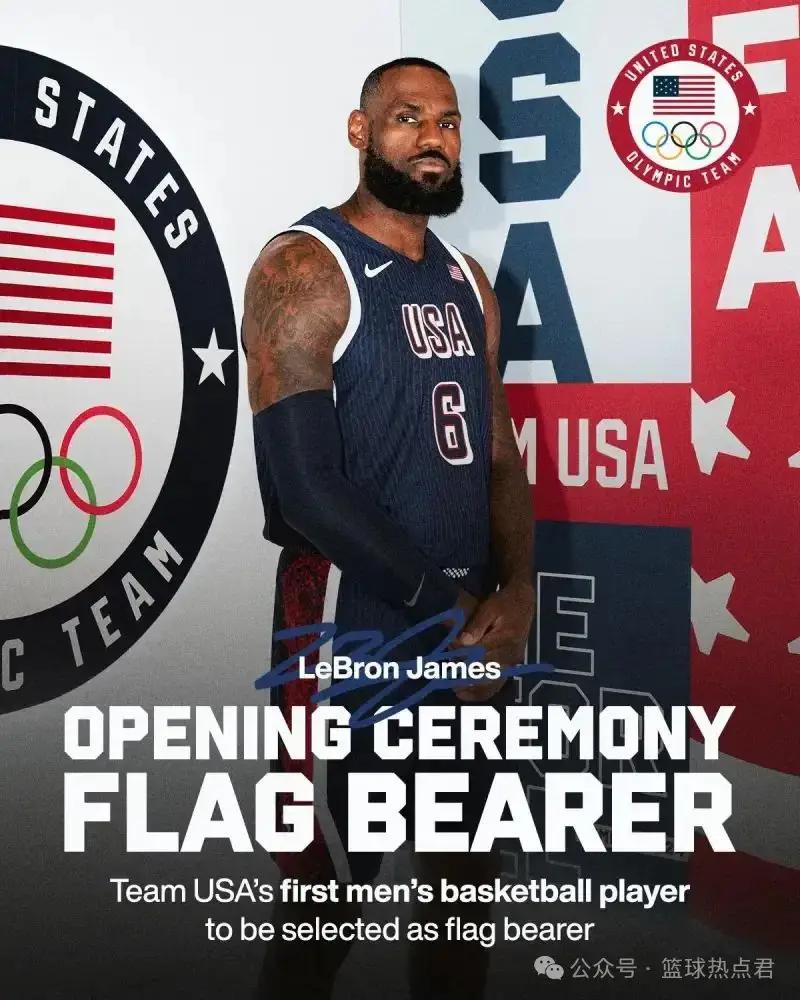 詹姆斯将成为本届奥运会美国代表团的旗手