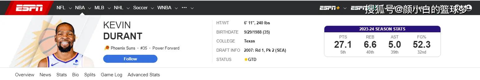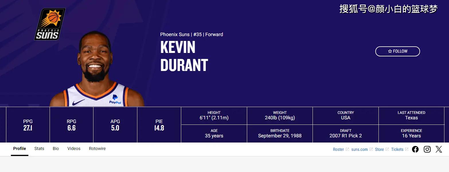 NBA官方的数据也是6尺11寸,这说明杜兰特的确是长高了。(另一种可能性是他开始打大前锋了所以愿意恢复真实身高)