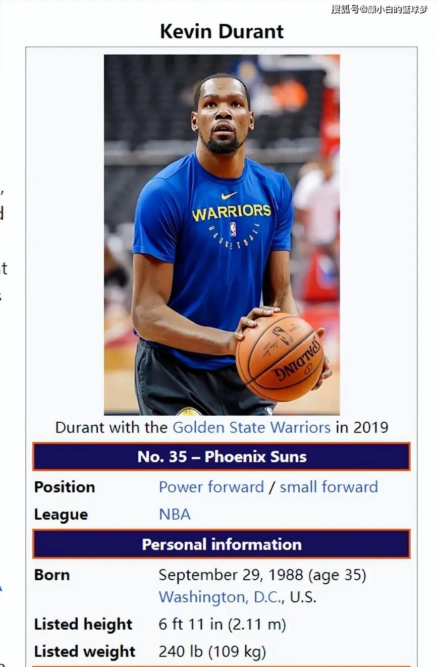 维基百科上,杜兰特身高已经改为6尺11(2.11米)。