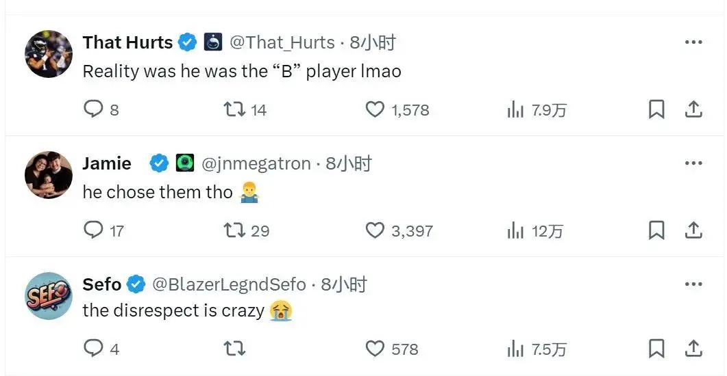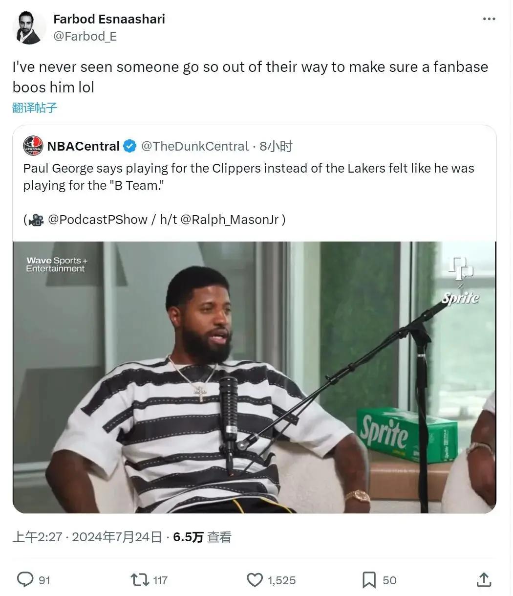 快船随队记者Farbod Esnaashari转推评论:“我从来没见过,有人这么不顾一切地想让球迷嘘他。”评论区的球迷纷纷表示:“你说快船是二队(B级球队),你自己才是B级球员。难道不是你选择快船吗?这种不尊重,真的太疯狂了。”