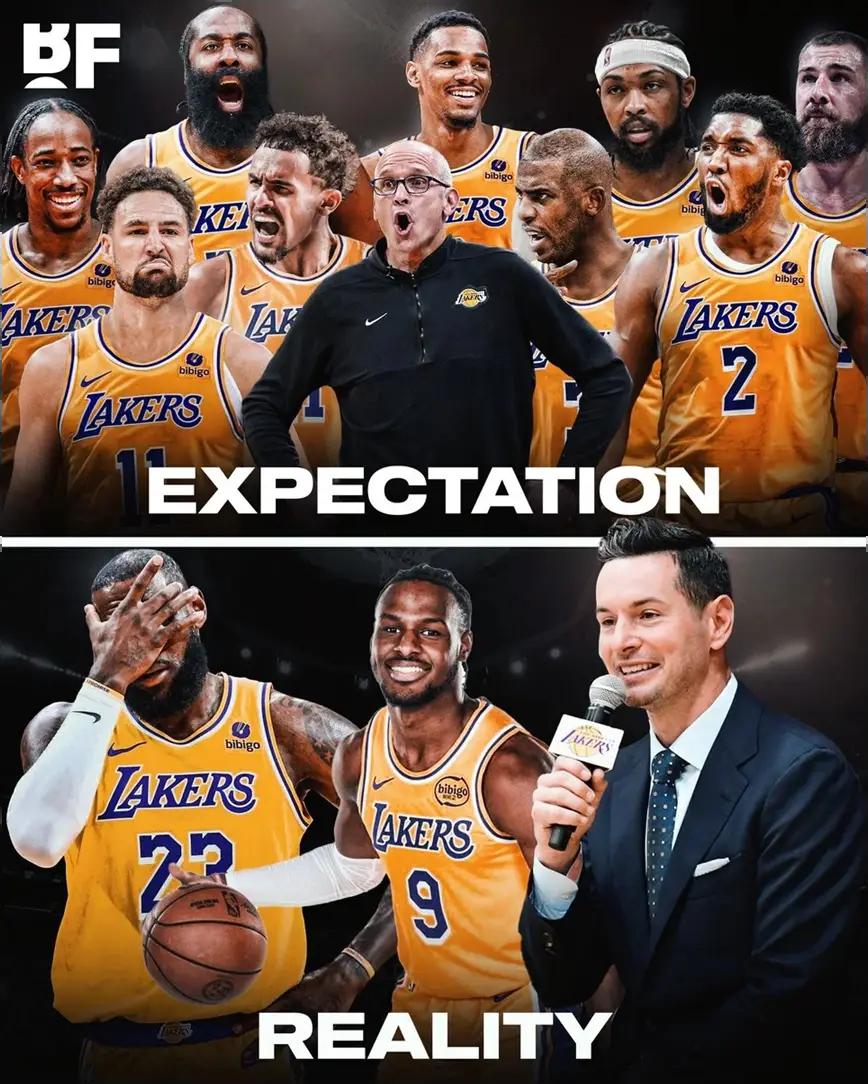 迎面向你们走来的是洛杉矶湖人队,他们谁都有意,但是兜比脸干净;他能谁都想要,但是谁都来不了;他们……算了,他们啥也不是。
