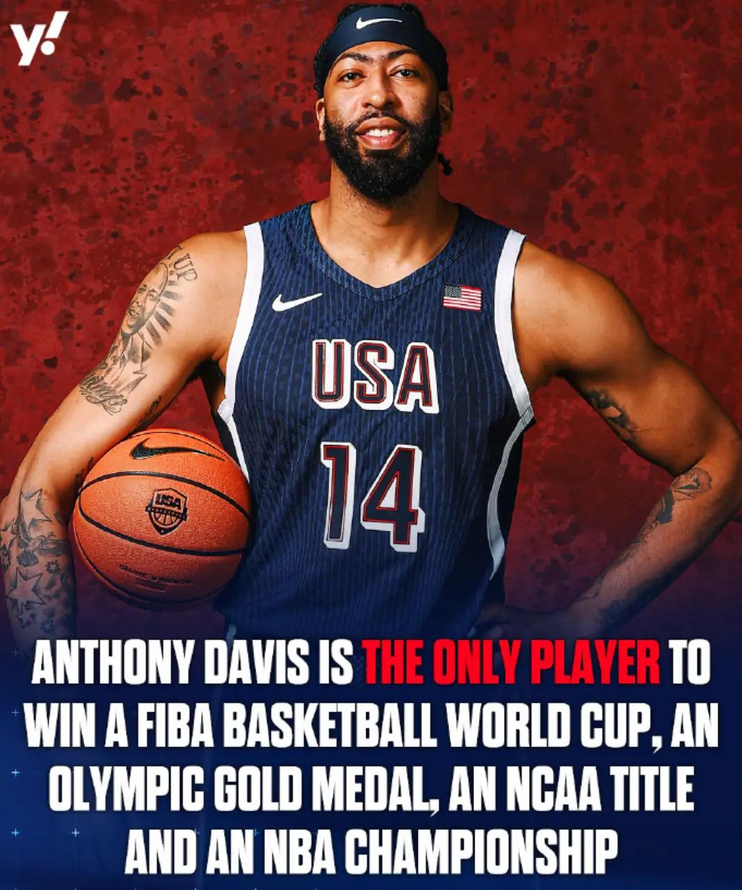 而且浓眉是历史上唯一一位得到FIBA篮球世界杯冠军、奥运会男篮金牌、NCAA冠军和NBA总冠军的球员。