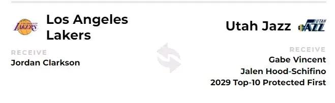 湖人送出文森特+席菲诺+2029年首轮签得到爵士的克拉克森
