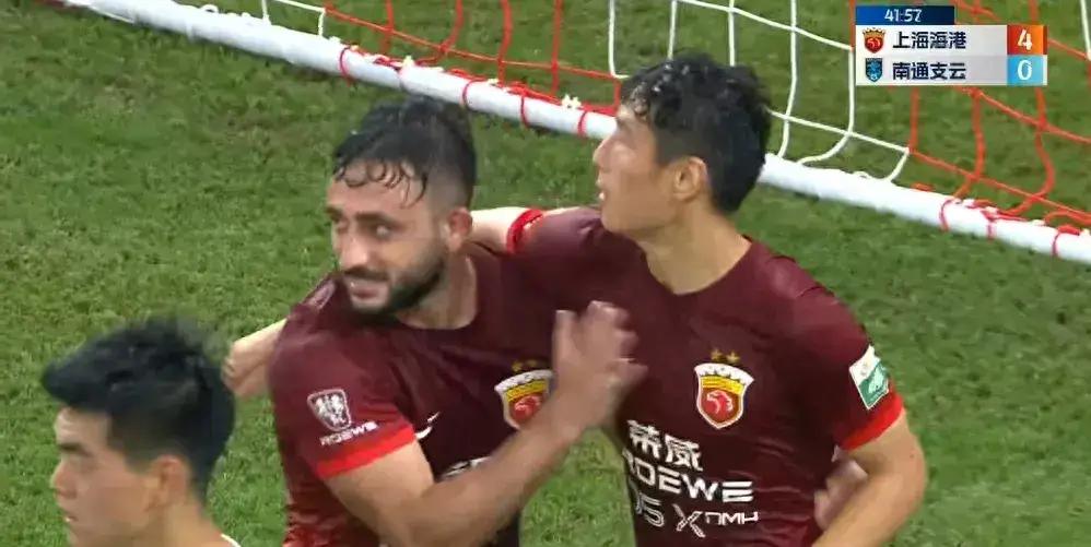 第39分钟,奇塔迪尼再送助攻,茹萨轰出一脚世界波,比分来到3-0。第42分钟,武磊右路横传,巴尔加斯轻松推射破门,比分变为4-0。半场结束海港4球领先,上半场海港有14脚射门6次射正,完全压制了南通支云。