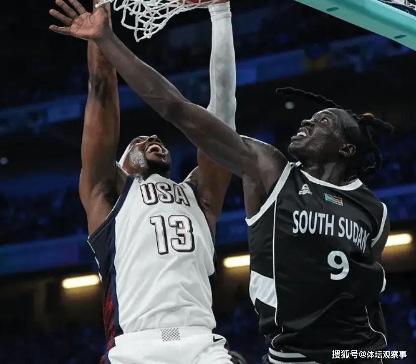 浓眉和阿德巴约,这两位在NBA中赫赫有名的中锋,同样在奥运会的赛场上大放异彩。特别是阿德巴约,他的表现尤为抢眼。在与南苏丹的较量中,阿德巴约独得18分,并抢下7个篮板,送出1次助攻,这一成绩不仅位列全队之首,更是全场第二高分。可以说,没有阿德巴约的出色发挥,美国队很难对南苏丹形成压倒性的优势。相比之下,恩比德在这场关键之战中缺席,贡献为零。