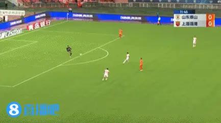 第12分钟,王大雷传球被断,海港反击,茹萨妙传远端,武磊前插小角度垫射打飞。
