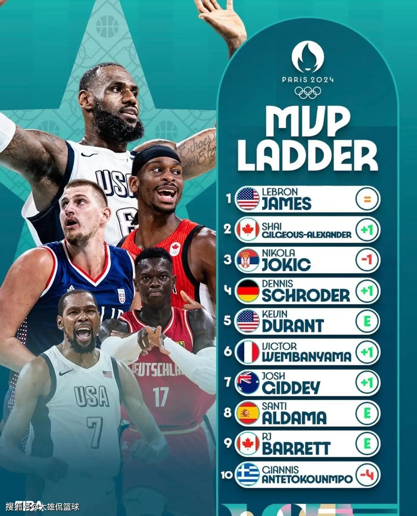 勒布朗詹姆斯作为美国队的队长,对于这次奥运会大赛,也是非常努力,总是在比赛攻防中,打出自己最好的一面。当然,这也是因为球队巨星队友多,球队善于利用他出场30分钟以下,几乎无敌的体能状态。