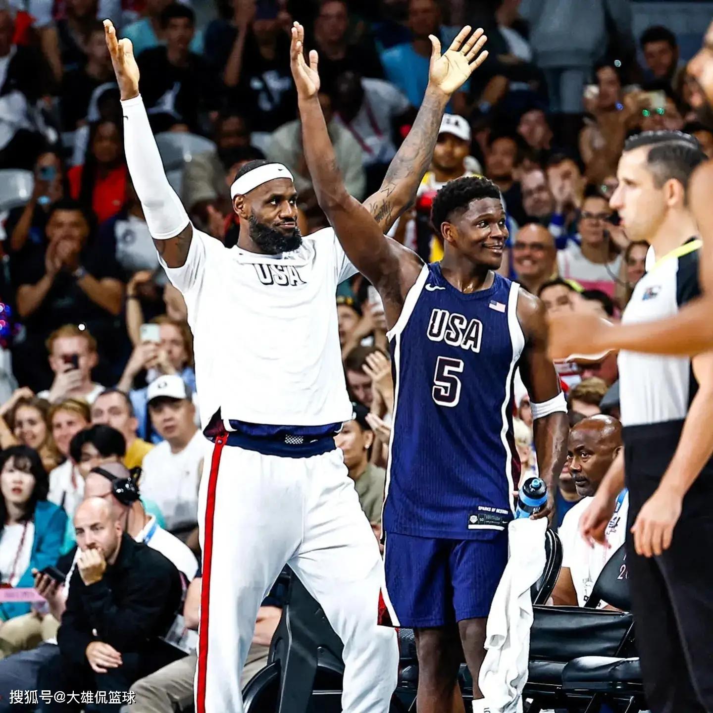 勒布朗詹姆斯不看好东道主法国男篮,主要是他们拥有恩比德、安东尼戴维斯和阿德巴约这样的内线,锋线还有杜兰特和杰森塔图姆,后卫线有库里和德文布克这些队友。美国男篮12人中,有9-10人都可以说巨星级别的人物,有一半都是攻防一体的球星。