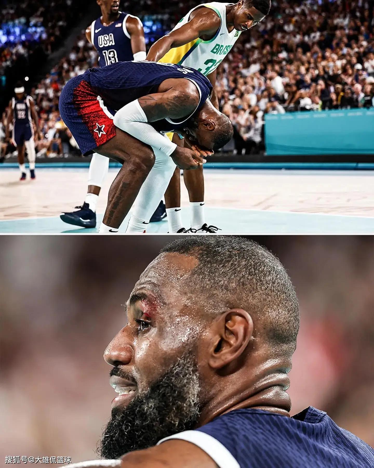 在法国巴黎奥运会四分之一决赛中,美国男篮以122-87的比分击败巴西队,大胜对手35分。在这场比赛中,双方的对抗非常激烈,这导致勒布朗詹姆斯在第三节,不慎被对方球员肘部击中眼睛。