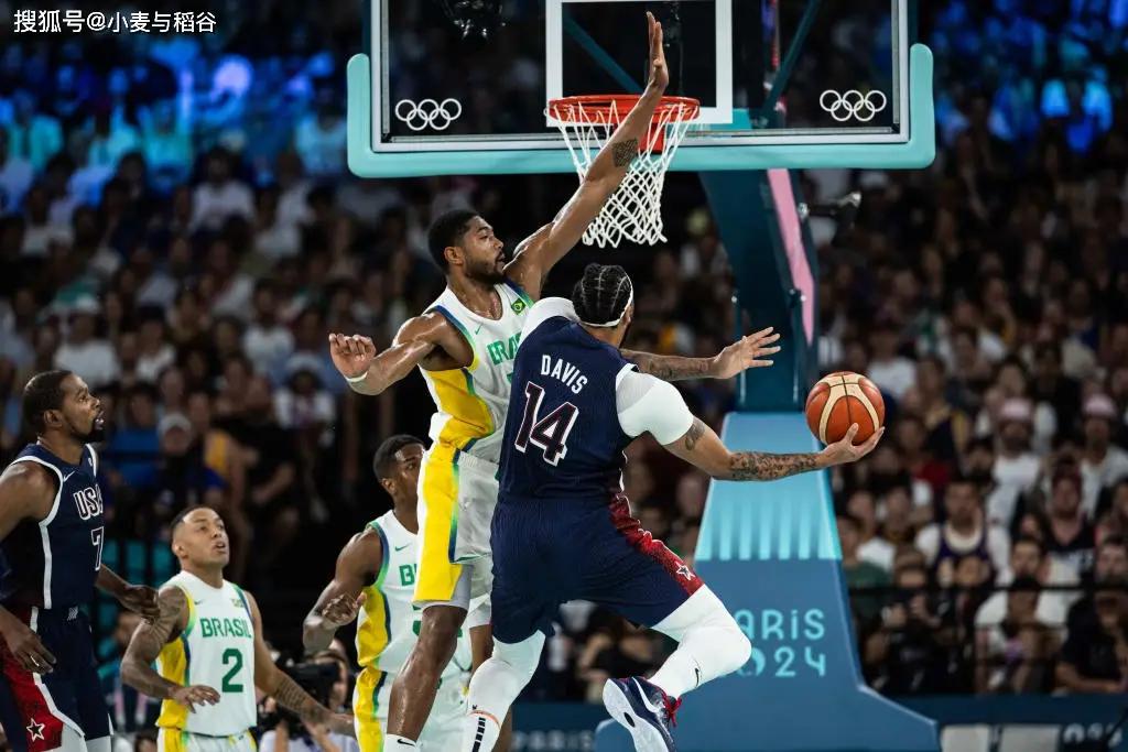本场比赛中,美国队的替补中锋安东尼-戴维斯(Anthony Davis)的表现依然是相当突出的。戴维斯全场出场15分59秒,投篮9中5,三分线外2中1,罚球2中2,得到了13分8篮板3助攻2抢断1盖帽的准两双数据,还有2次犯规,其中还包括了3个前场篮板,正负值为+9。戴维斯在出场时间不多的情况下在攻防两端都展现出了足够的统治力,他的进攻效率非常稳定,他的得分手段也是相当多样化,而且他在前后场篮板争抢方面的表现也是相当突出。戴维斯在防守端的表现也是远超大家的预期,他在防守端也展现出了超强的个人能力,他的防守贡献度也是相当突出的。总体来看,戴维斯的表现给人留下了深刻的印象,他确实是一名攻守兼备的全能型内线球员。