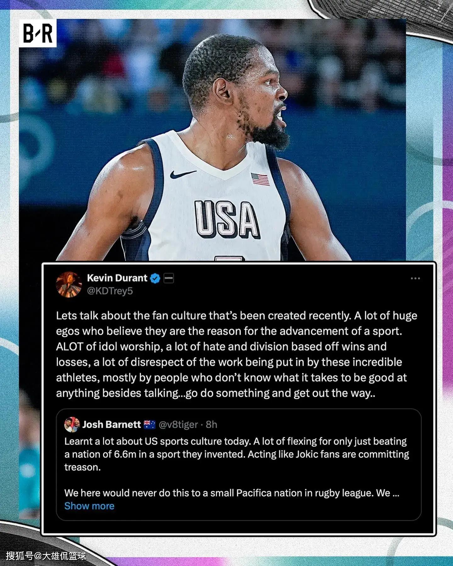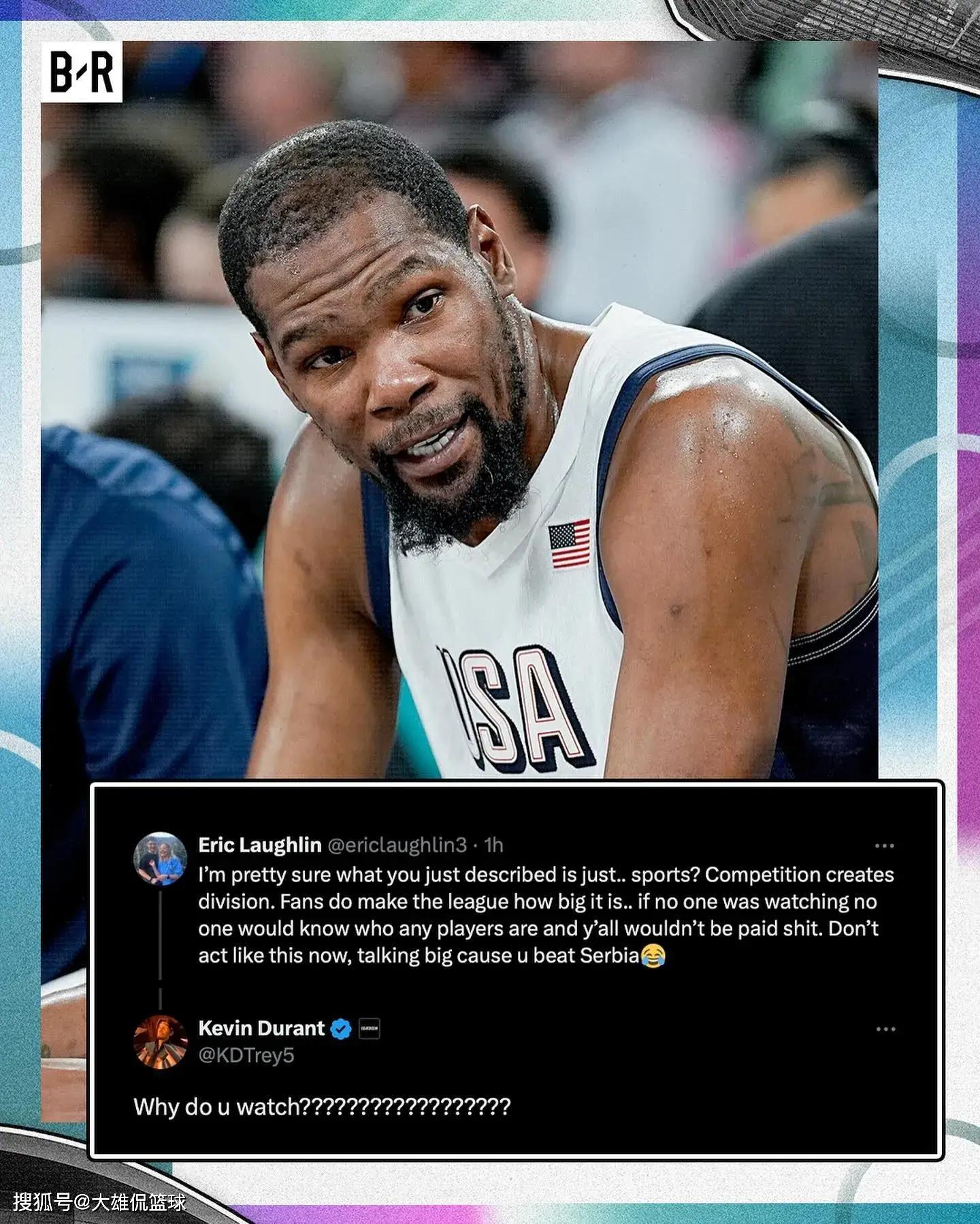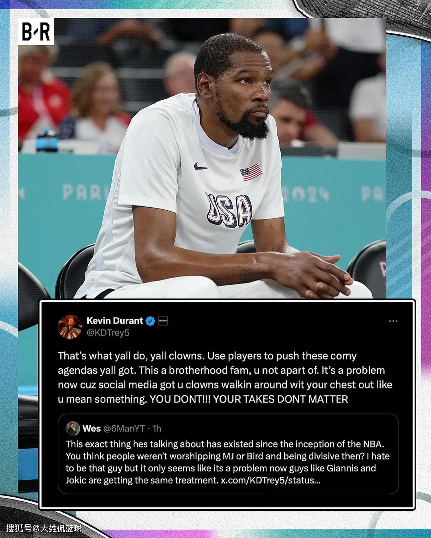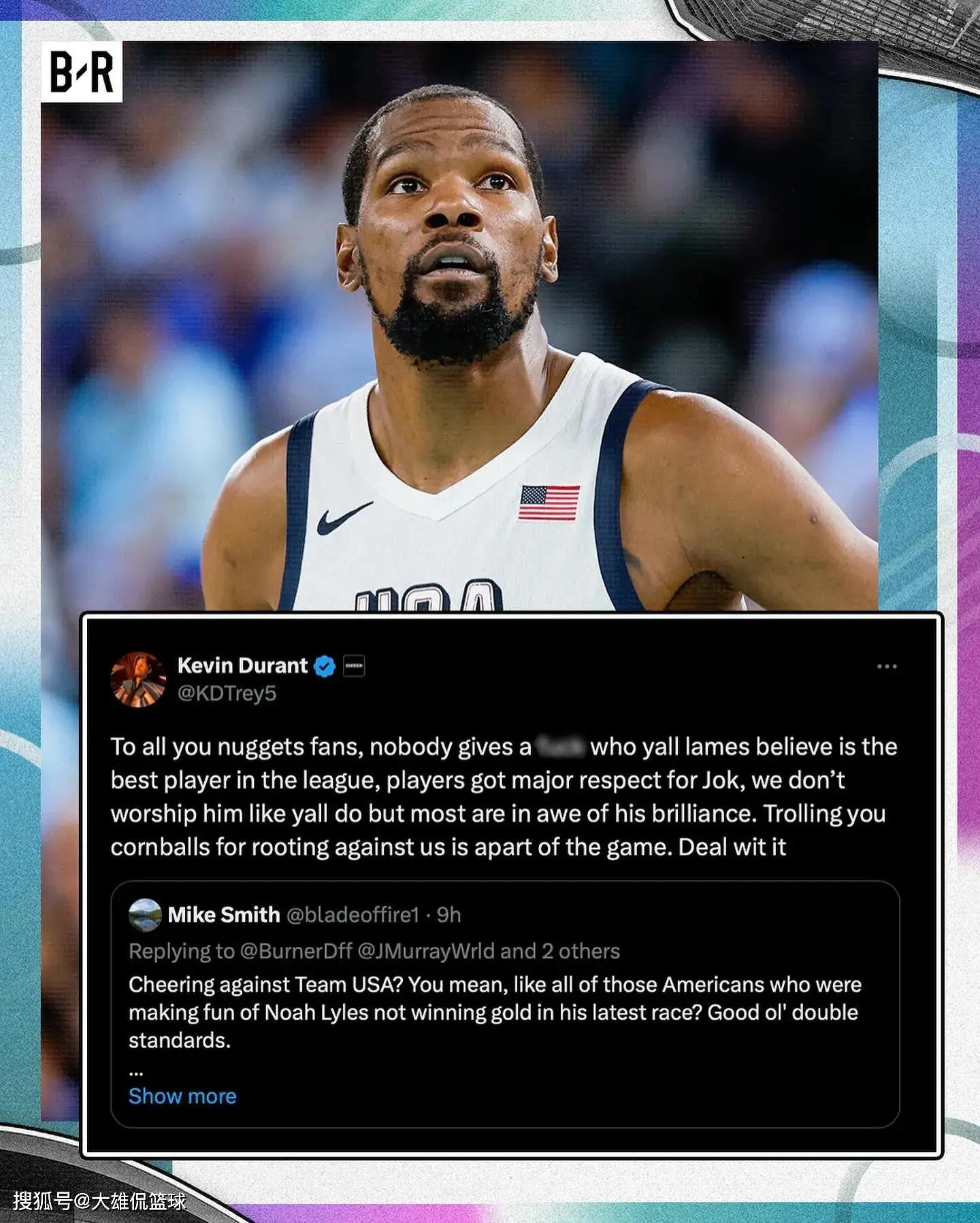 在击败塞尔维亚男篮之后,杜兰特也是在个人社交媒体上,发文提到了丹佛掘金和塞尔维亚男篮重大约基奇。杜兰特在文中表达了自己的一些不满。