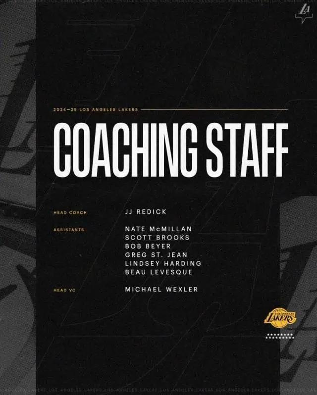 近日,深受球迷喜爱与期待的洛杉矶湖人队,终于正式公布了 2024 - 25 赛季的教练团队成员。其中,担任主帅一职的是雷迪克;助理教练分别为麦克米兰、斯科特 - 布鲁克斯、鲍勃 - 贝耶、格雷格 - 圣让、林赛 - 哈丁以及博 - 勒维斯克;而首席视频协调员的重任则落在了迈克尔 - 韦克斯勒的身上。