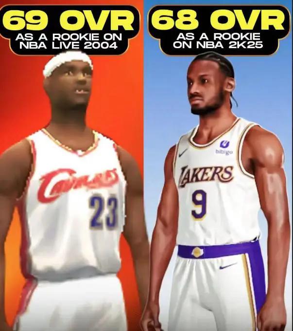 詹姆斯的2K评分来自于那个时代的2K LIVE,这款游戏的评分普遍较高。因此,詹姆斯的69分已经算得上是当时的顶尖水平。这说明布朗尼和詹姆斯在新秀赛季的差距还是相当大的。