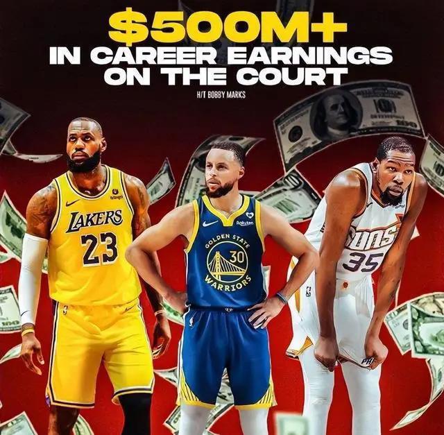 而就在近日,美媒B/R也统计了NBA历史生涯总薪资排名前15位的球员,前五位分别是: