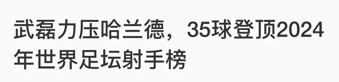 为什么这样说呢?实际上,武磊是本年度全球射手榜高居第一的球员,他在2024年度已经打入35粒进球,力压哈兰德、姆巴佩等知名球星,可见他的进球效率是相当惊人的。在联赛中,武磊能够源源不断为球队做出贡献,但是来到国家队后,武磊不得不为了战术原因,来牺牲自己靠近门前的机会,他的位置必须后撤,并且长时间参与防守。