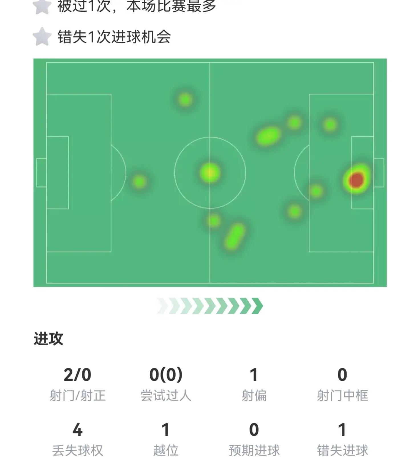 但是回到主场后,他在沙特的比赛数据好一点,主要还是可以进到禁区了,并且还有1个越位,错失进球一个,他的头球是打中门梁,如果进了,他就是英雄了,可惜没有进, 只能是被球迷骂是狗熊了。武磊在沙特下半场被换下。