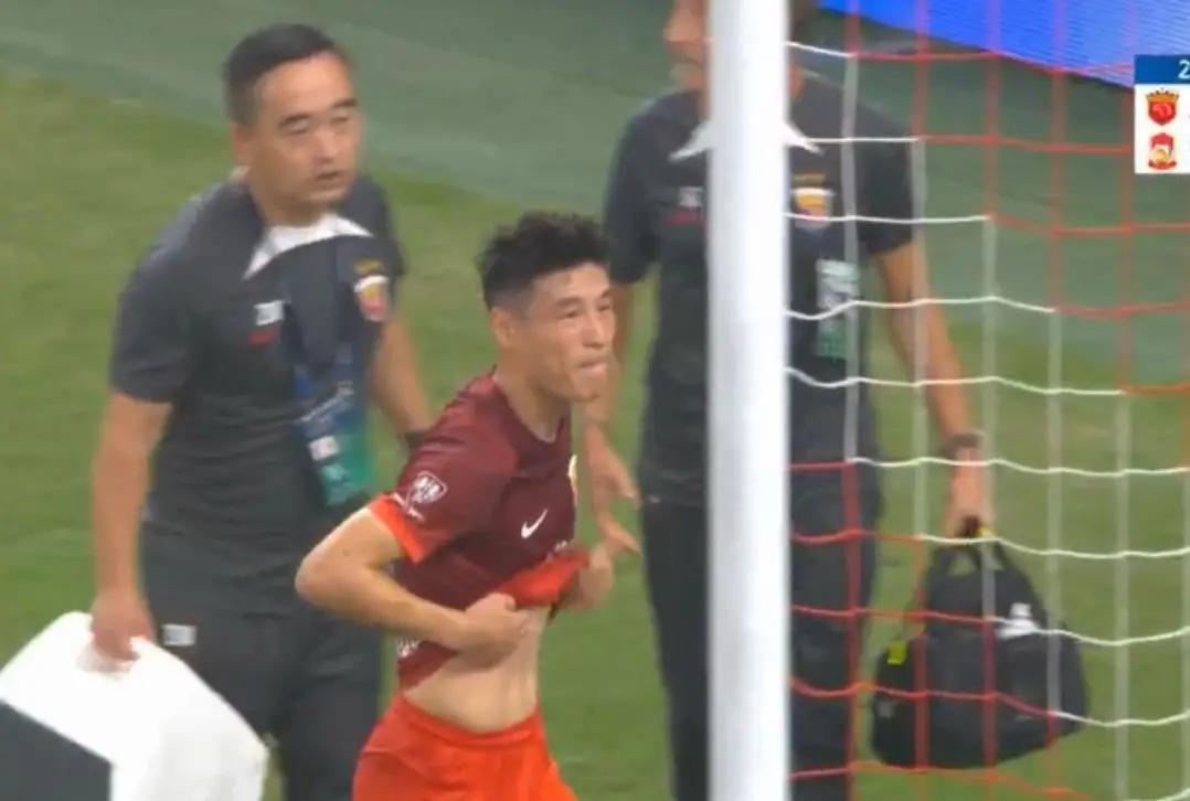 好几次,武磊在禁区里拼抢的时候都被撞到了腹部。在武磊撩起球衣的时候,球迷发现他的腹部似乎出现了血印。到了第30分钟,武磊再一次被撞了一下,他感觉到自己没法坚持了,随后直接倒在对方禁区里。