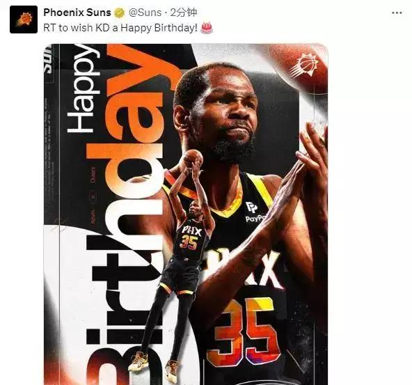 于杜兰特36岁诞辰之际,NBA、太阳队以及诸多美国媒体均传达了祝福。NBA官方在社交平台上分享了杜兰特的图像,并附文:“共同祝愿凯文-杜兰特36岁生日幸福!”太阳队亦发布合影以示敬意和祝福。美国媒体则高度赞扬,将杜兰特誉为“篮球史上最卓越的得分手,以及技艺超群的NBA球星”。这些颂词与赞誉,既是对他过往成绩的认可,亦是对他未来成就的期许。
