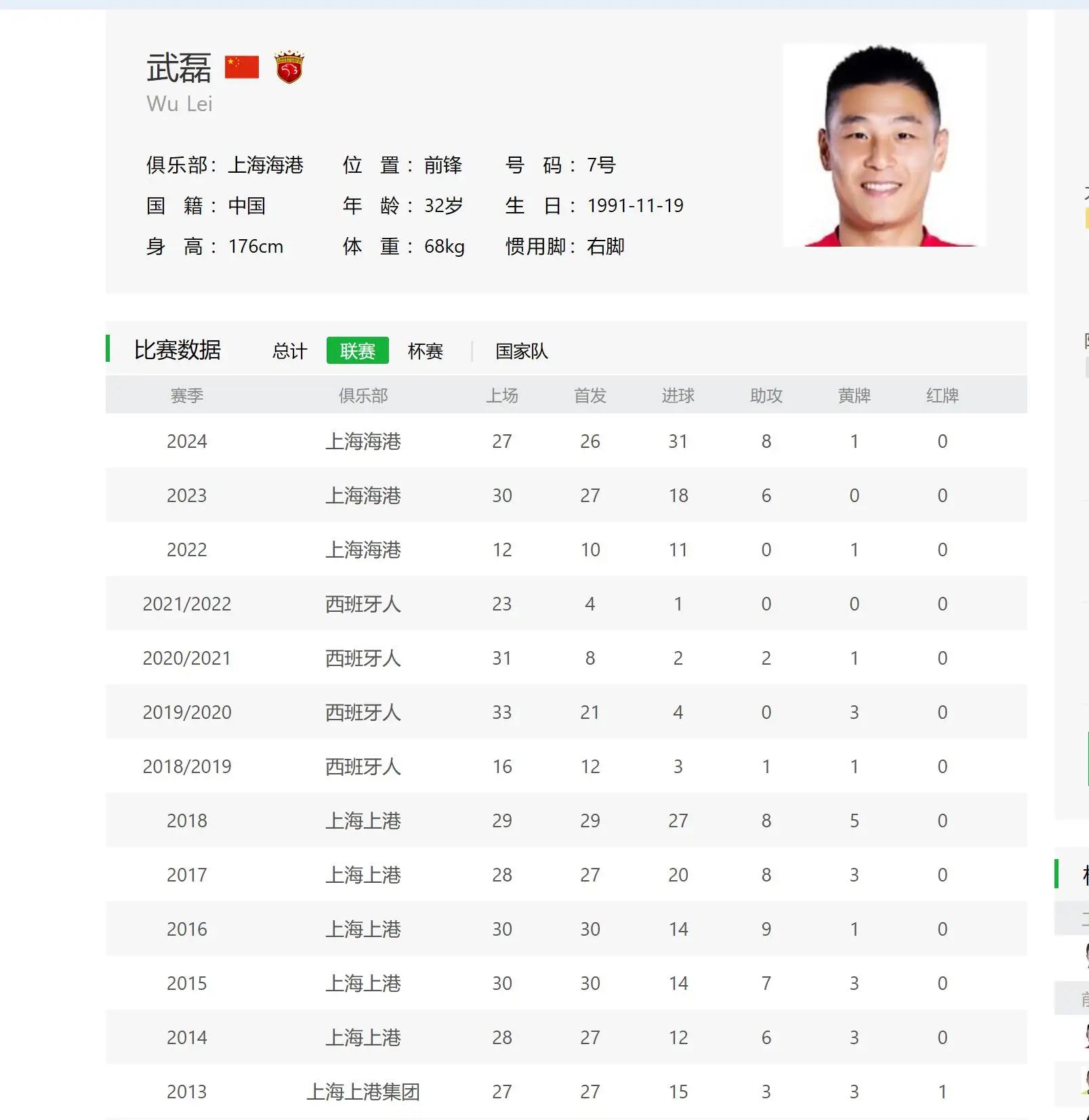 根据第三方的数据统计,武磊在中超联赛240场比赛里面,进球162个, 本赛季进球31个,无论是刚出茅庐,还是现在30多岁了,武磊在中超比赛只要上场就可以进球,而且武磊的跑位跟踢球特点,也是决定他的职业寿命还是非常强,本赛季打到27轮才受伤打不了比赛,笔者认为还是赛程过于密集,加上武磊天赋里非常强,也造就他在中超的神话, 作为一个33岁的球员,武磊起码还可以像C罗那样打到39岁,属于他的职业寿命还是非常长,笔者认为大家对于武磊责备,不是俱中超俱乐部的表现,而是国家队表现,主要还是他的强队的时候隐身,看看武磊在世预赛40强进了5个球,而因为在日本跟沙特的比赛没有进球,就被很球迷说,现在武磊都受伤无法打澳大利亚的比赛,他又成为球迷争议的焦点, 笔者认为 ,大家不要对武磊过于苛刻,主要是国家队里面真的没有像奥斯卡那样传球手。
