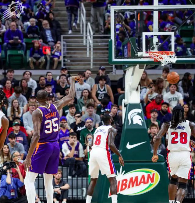 北京时间10月9日,NBA季前赛继续进行,菲尼克斯太阳对阵底特律活塞,太阳全主力出战,先发阵容依旧是琼斯、比尔、布克、杜兰特和普拉姆拉,这套先发阵容应该会成为新赛季的核心阵容。
