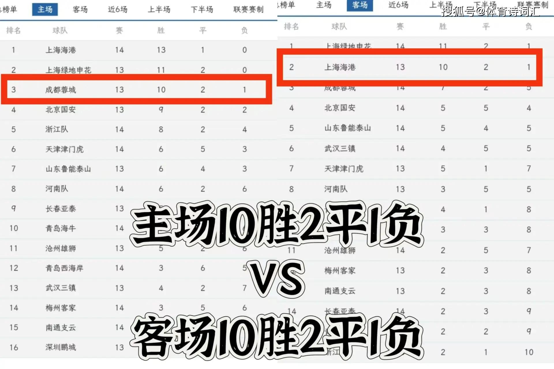 两队在联赛第13轮的首次交锋中,上海海港2-0拿下成都蓉城,奥斯卡点射打破僵局,补时阶段巴尔加斯抓住成都的失误单刀破门锁定胜局。成都蓉城今年在主场的战绩是10胜2平1负积35分,排在主场榜第三名,而上海海港客场战绩是10胜2平1负积35分,位居客场榜的第2名。两队在不同主客场的战绩相同,主场35分的成都蓉城迎战客场35分的上海海港,本场两队势必会踢出精彩比赛。