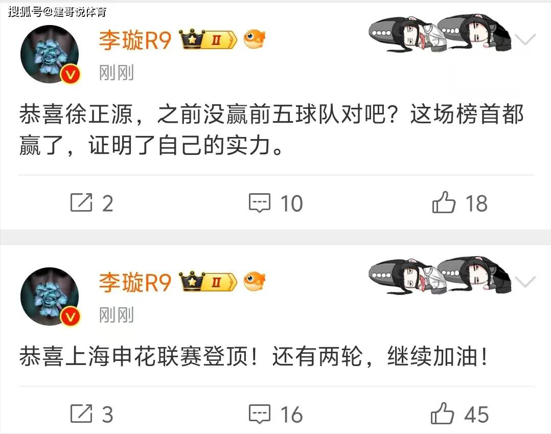 当上海海港1-3输球后,记者李璇接连更新社交点评了这场焦点大战,从记者李璇2次更新的内容来看,他好像真的是话中有话,在他说出:之前徐正源从来没赢过中超前5的球队后,这话话到底是夸奖成都蓉城踢得好打破魔咒,还是嘲讽海港自己不争气送给成都蓉城改写魔咒的机会呢?结合记者李璇上个动态一直在夸上海申花的事实,看样子他是有点夸奖成都蓉城赢榜首的含义了。