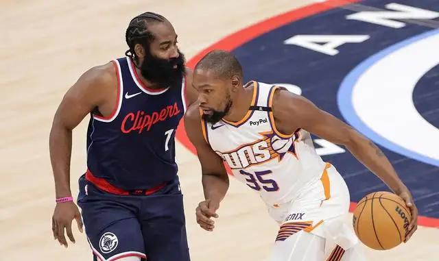 休赛期间,太阳并未对阵容进行太多调整,三巨头仍然是球队的核心。快船则面对了乔治的缺席以及莱昂纳德无限期休战的挑战。两支球队都在变革之中,而杜兰特和哈登这对老相识在新赛季首战中上演了激烈的对决,备受关注。相比快船,太阳有着更多的得分点,而杜兰特在开场之后选择了稳健的进攻。首节比赛,杜兰特拿到5分。哈登则以罚球得到2分,但他出色地串联起快船的进攻,让球队在没有莱昂纳德的情况下一直保持紧咬比分。