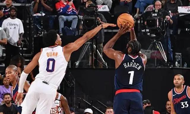 北京时间2024年10月24日,洛杉矶快船与菲尼克斯太阳的比赛中,哈登第三节单节轰下16分,帮助快船迫近分差。然而,在关键时刻,他未能将球抛进,错过了终结比赛的机会。加时赛中,哈登在关键时刻两罚一中,再次错失扭转战局的机会。最终,太阳以116-113险胜快船。杜兰特贡献了25分7篮板,哈登得到29分12篮板8助攻。