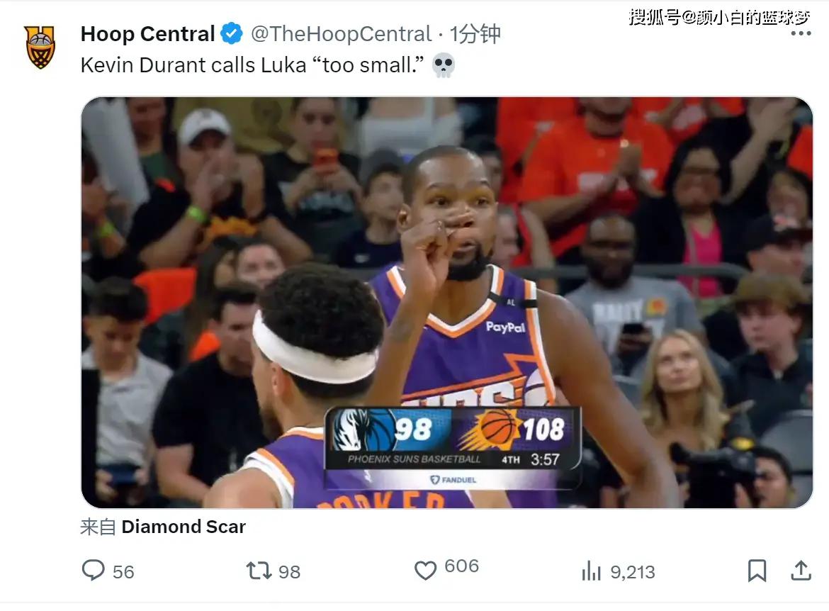 杜皇迎着东皇中投,杜兰特比了一个too small,还剩1分01秒独行侠放弃比赛,东契奇39分钟,25中12,三分13中5,拿到40分10篮板4助攻1盖帽2失误,真实命中率66.1%。独行侠只有东契奇、克莱、欧文三人在战斗。
