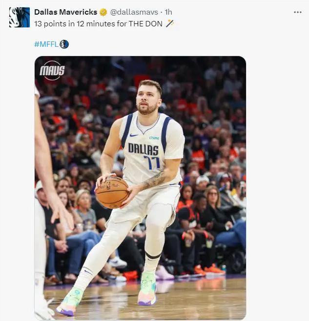 第三节,东契奇继续发威,三分球连连命中,单节拿下10分,总计33分、6篮板、3助攻和1盖帽。东契奇的得分稳定且高效,为球队贡献巨大,然而独行侠仍处于10分的落后。