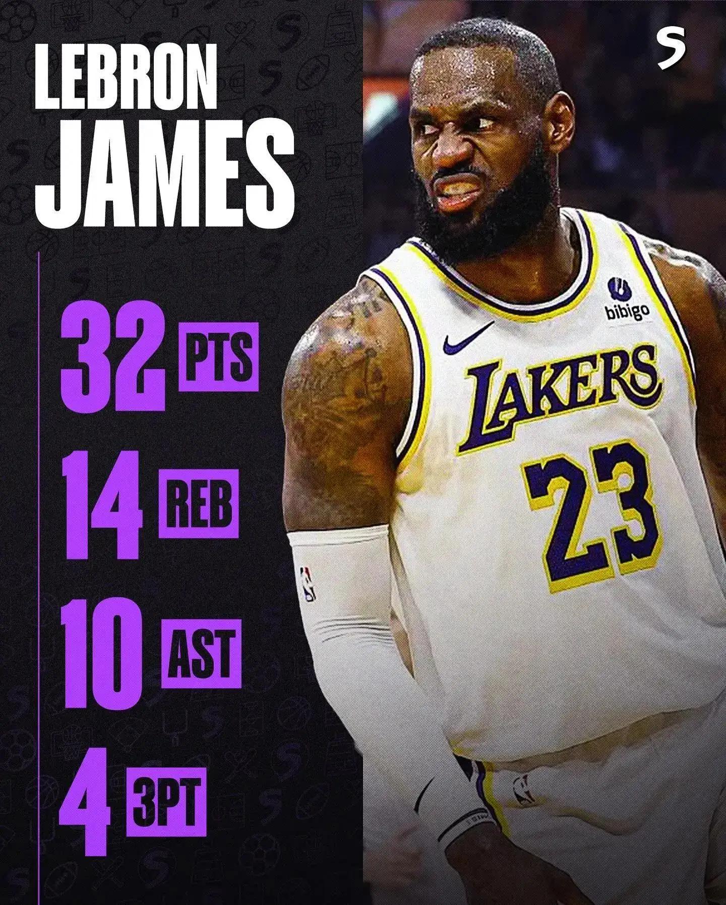 毕竟,这球主打一个相信队友的手感,能一直延续下去。要知道勒布朗詹姆斯独得16分的表现,帮助湖人打出了一波21-0的冲击波,完全逆转了比分。整场比赛勒布朗詹姆斯打出了32分,14个篮板和10次助攻的大号三双数据。
