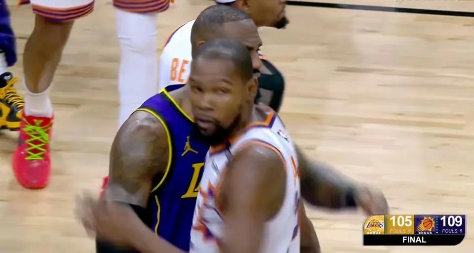 首节比赛湖人凭借浓眉哥戴维斯的强势表现迅速拉开分差,戴维斯在开局的两分钟内接连砍分,还送出一记封盖,助湖人打出梦幻开局,然而太阳并未因此慌乱,杜兰特和比尔带领球队迅速回击,帮助太阳将分差缩小至个位数。湖人在这一节高效进攻奠定了领先优势。进入第二节,湖人进攻节奏下滑,效率明显不如首节,全队仅得14分状态出现波动。太阳则利用湖人调整期间迅速反超比分,布克在节末命中关键三分,帮助球队带着2分优势进入半场休息。经过中场调整后,湖人找回外线手感,第三节重新掌控主动权。里夫斯和拉塞尔在外线的火力输出帮助球队压制住太阳的反攻势头。然而进入第四节湖人攻防转换中屡屡失误,导致局势被动,太阳则抓住机会,通过杜兰特与布克的默契配合,为最后的决胜阶段奠定基础,最终,湖人以105:109不敌太阳。