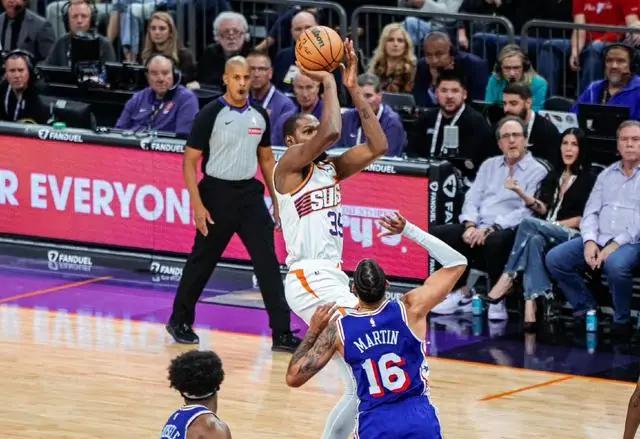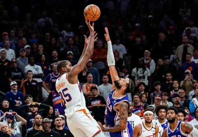 北京时间11月5日上午11:00,NBA常规赛的对决正在如火如荼地进行之中,菲尼克斯太阳坐镇主场,迎击费城76人队。本场比赛之前,太阳以5胜1负的战绩,排名西部第3,作为联盟账面实力最强球队之一,这才是太阳队应有的实力,三巨头杜兰特、布克和比尔联手,进攻火力直接拉满。相比上赛季,太阳三巨头一是配合更加默契,经历了一年的磨合,二是身体健康状态更好,去年三人可以说轮流因伤缺席,共同合作的场次没几场。新赛季,健康的太阳三巨头,势必要带队取得更大的突破,目前,三人的外线命中率都保持在4成以上。