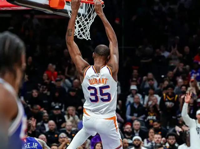 末节决战,马克西持续发力连轰两个炸裂三分球都有,带领76人打破僵局,一度取得接近10分领先,太阳这边,布克连连打铁,一个投不进,比尔也没得到太多进攻机会,还好杜兰特超级爆发,末节8投6中独得15分,带领球队逆风翻盘,最后又依靠一个强势上篮终结比赛,最终,太阳118-116险胜76人,继续排西部第二。
