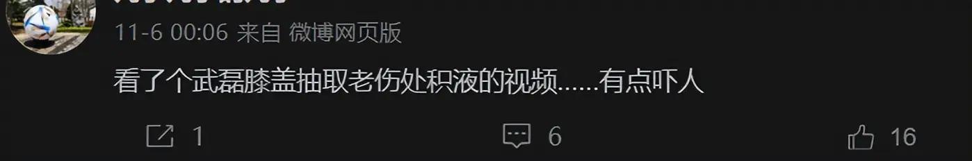 11月6日,记者陈华发武磊动手术抽取膝盖老伤积液的消息(上图)。